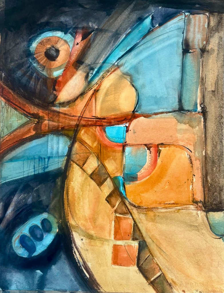 La primera fase, Angor, refleja esa angustia inicial en la que todo es zozobra. Los trazos no conducen a nada, y el azul domina, símbolo de encierro, duda y silencio interior.