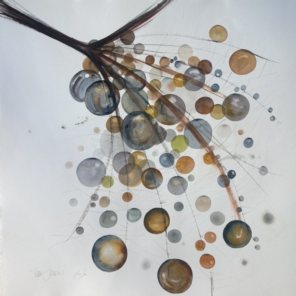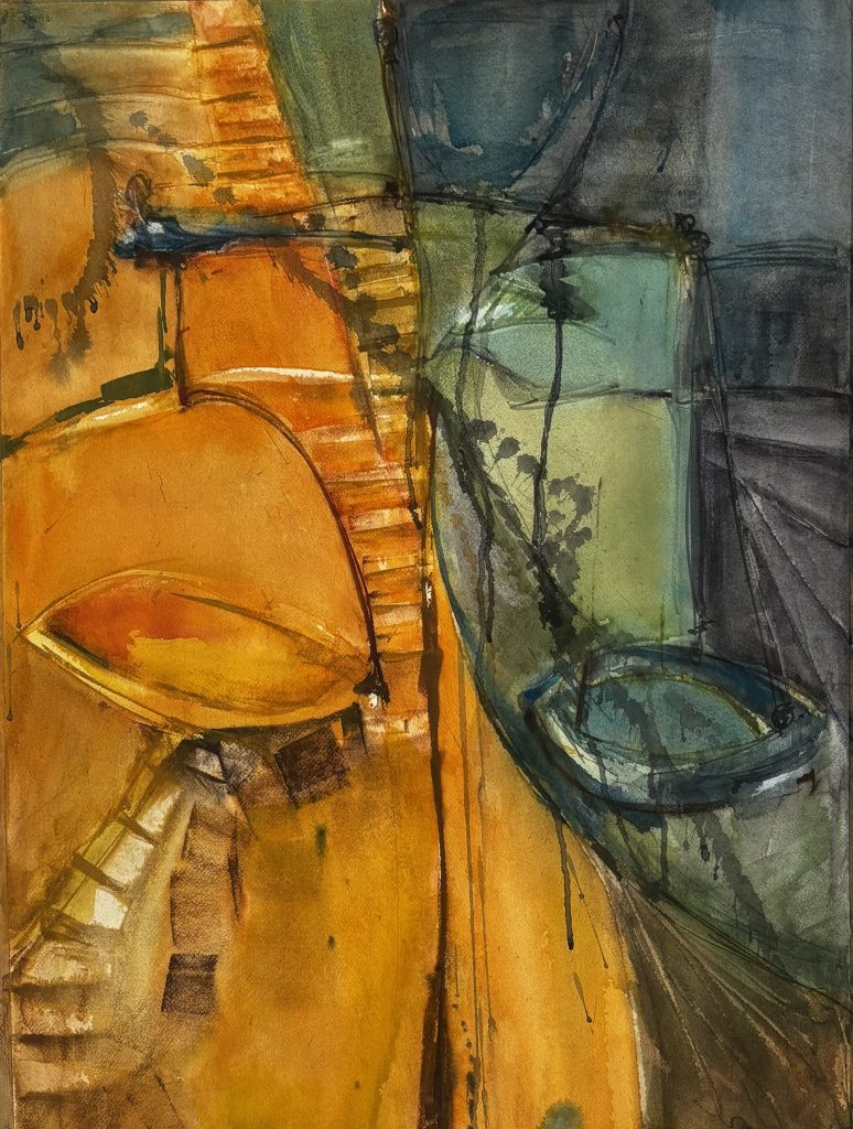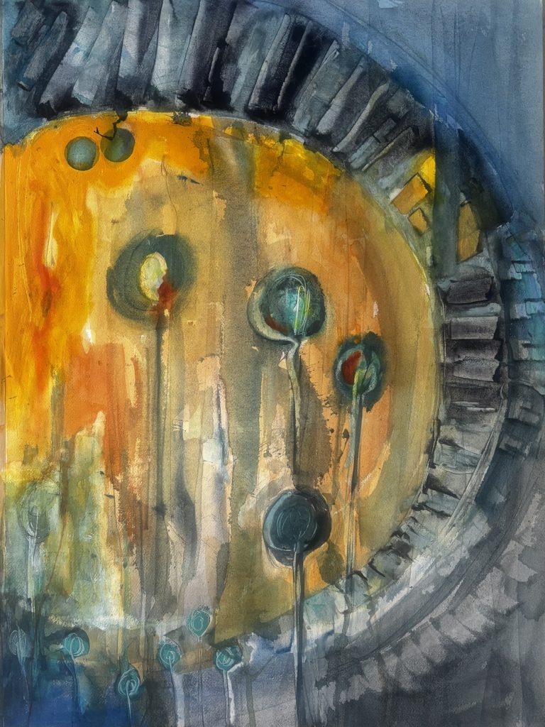 En Irruere, algo se libera. Me lanzo al papel con ímpetu, sin certezas, guiada solo por la urgencia de crear. Los verdes irrumpen, representando el despertar, el riesgo, la energía de quien rompe su propia contención.