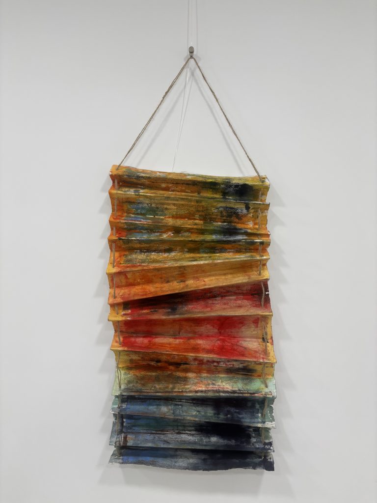 Y en Invenio, la obra finalmente brota. Ya no hay control, solo fluidez. El color emerge con fuerza, predominando los rojos y naranjas, símbolos de vida, pasión, impulso y transformación. Es el momento del hallazgo, donde la emoción toma forma, y la creación deja de ser una lucha para convertirse en revelación. Así, Triadis condensa un viaje emocional desde el bloqueo hasta la liberación plena de lo auténtico.