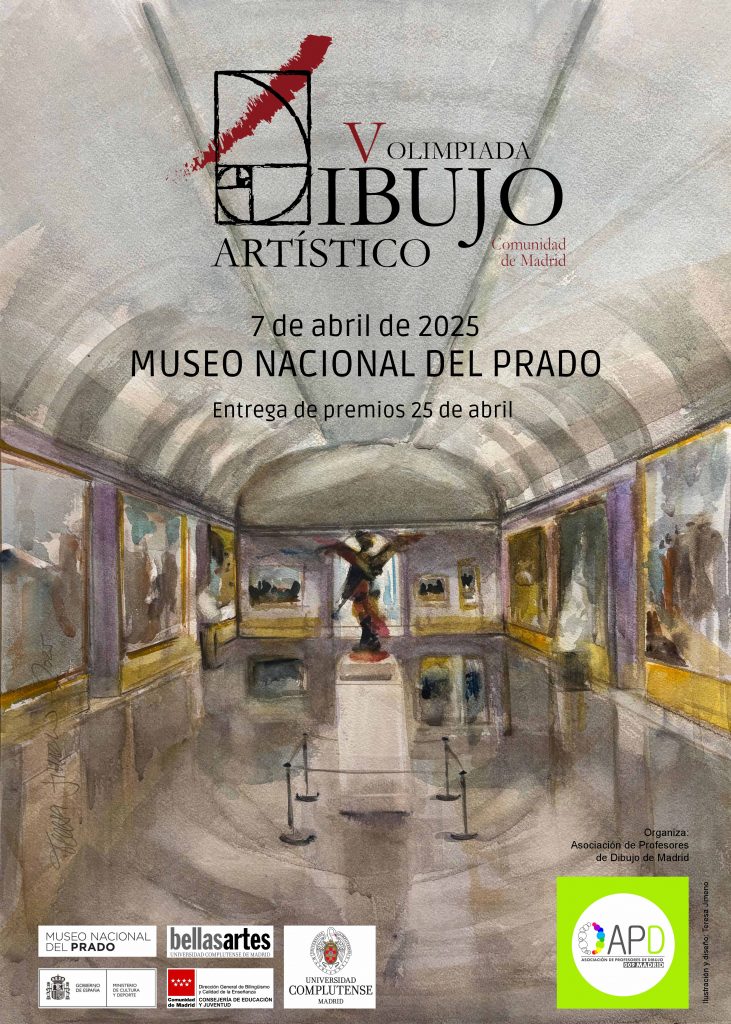 Cartel V Olimpiadas de Dibujo Artístico de la Comunidad de Madrid en el Museo Nacional del Prado. Organiza Asociación de Profesores de Dibujo de Madrid.